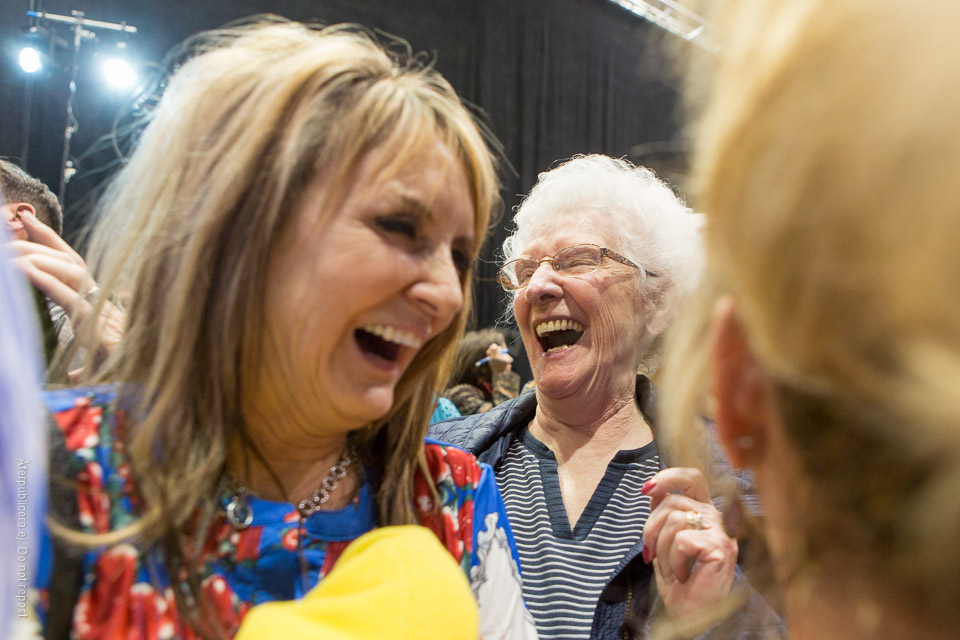 Skrattande valmötesdeltagare