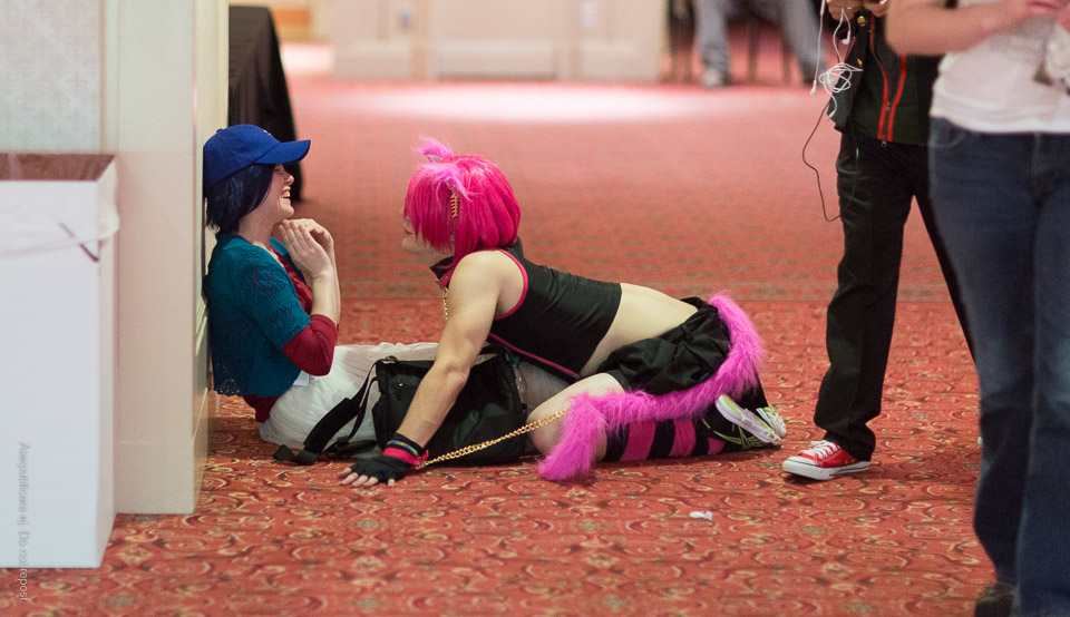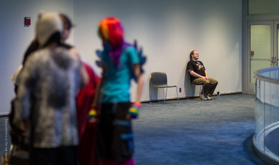 Men så såg jag ett gäng utklädda ungdomar, hakade på, och tillbringade de följande dagarna på världens mysigaste konvent. Filmvisningar med My Little Pony-fanfiction, föreläsningar om erotisk knutteknik, panelsamtal mellan inomkulturellt världsberömda röstskådespelare … Sällan har så många referenser varit så bortslösade som på mig där och då. Men jag är glad åt fototillfällena!