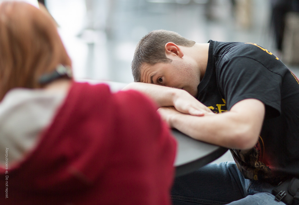 Nu var det väl inte riktigt så här cyniskt jag gick till väga när jag tog bilden ovan. Men ändå så pass att jag känner att jag borde nämna saken. Och göra klart att mannen på stolen inte sitter där av ren utstötthet – han vaktar faktiskt utgången.